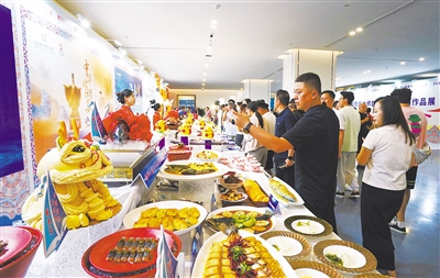 非遗织绣、服饰及文创、特产,突出“融”的主旨,尽显各民族交往交流交融的深厚历史与时代内涵。非遗艺术鉴赏展生动诠释了风土人情与民俗文化,成为连接过去与现在、传统与现代的文化桥梁。
