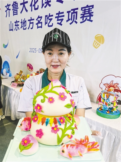 美食节上,工作人员展示胶东大花馍。姜雯媛摄