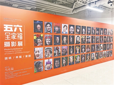 铸牢中华民族共同体意识艺术展之五六全家福摄影展亮相美食节。姜雯媛摄